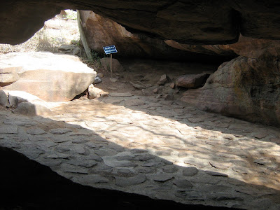 The Rock Shelters of Bhimbetaka (or Bhim Baithaka) lie in Raisen District of Madhya Pradesh and is 45 km south of Bhopal at the southern edge of the Vindhyachal hills. South of these rock shelters are successive ranges of the Satpura hills.The entire area is covered by thick vegetation, has abundant natural resources in its perennial water supplies, natural shelters, rich forest flora and fauna, and bears a significant resemblance to similar rock art sites such as Kakadu National Park in Australia, the cave paintings of the Bushmen in Kalahari Desert, and the Upper Paleolithic Lascaux cave paintings in France.
